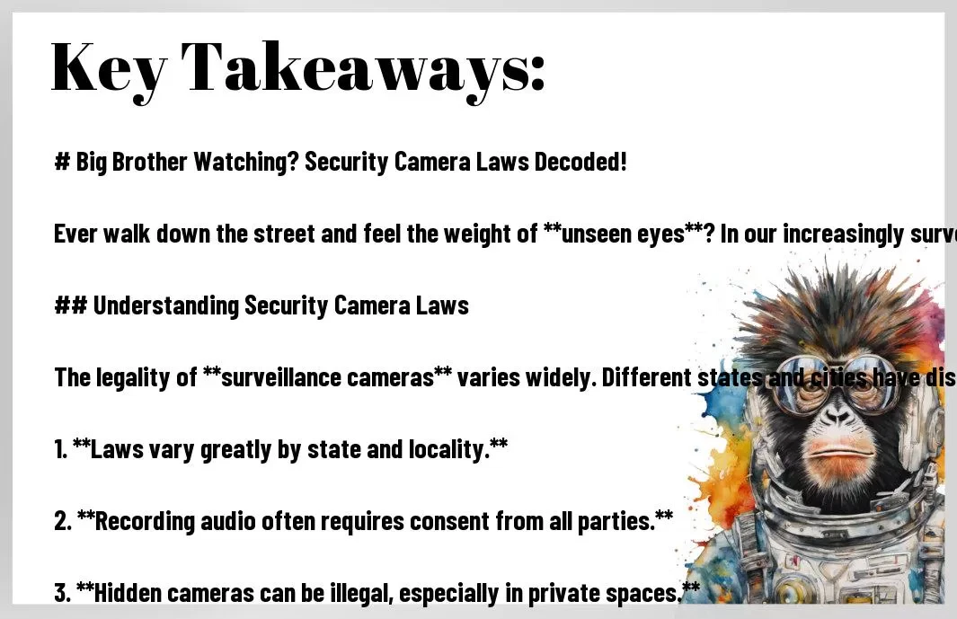 - Security camera laws vary by state and even city, making it crucial to understand local regulations to avoid legal issues.