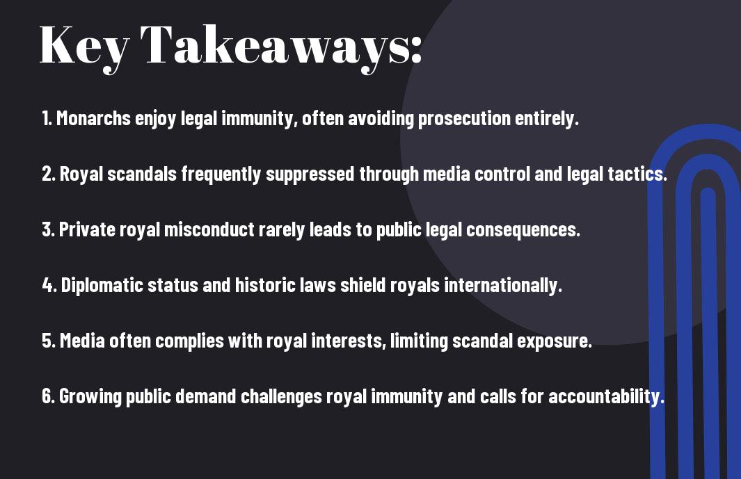 Following this, you can see that the question of whether royals can be prosecuted reveals a complex interplay of legal immunity, media influence, and historic privilege that often shields them from accountability. While you might expect the law to apply equally, royal status frequently creates barriers to justice, especially when misconduct crosses borders or involves public harm. As public scrutiny grows and legal systems face mounting pressure, you are witnessing a slow but significant challenge to the long-standing protections that have allowed royal scandals to remain hidden for too long.