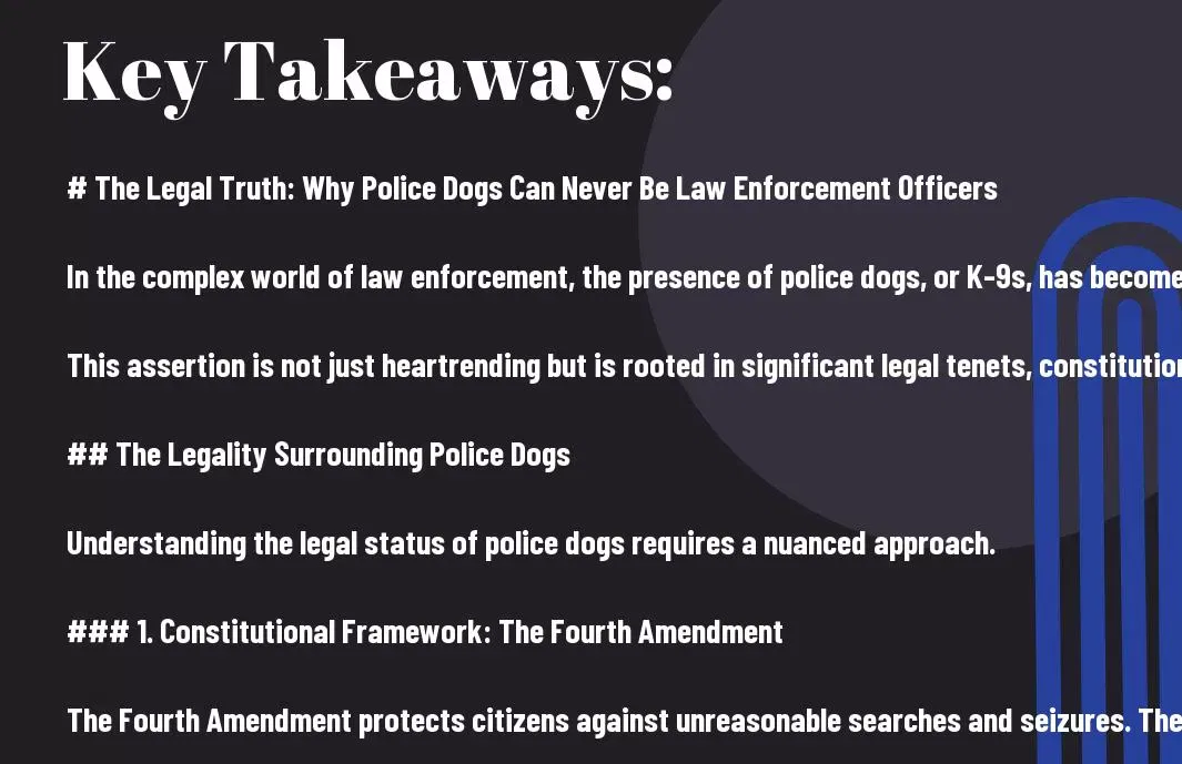 Your understanding of police dogs’ roles and limitations is crucial in promoting a nuanced appreciation of their contributions to law enforcement. By recognizing the legal distinctions between police dogs and human officers, you can help dispel misconceptions and ensure these animals receive the respect and care they deserve.