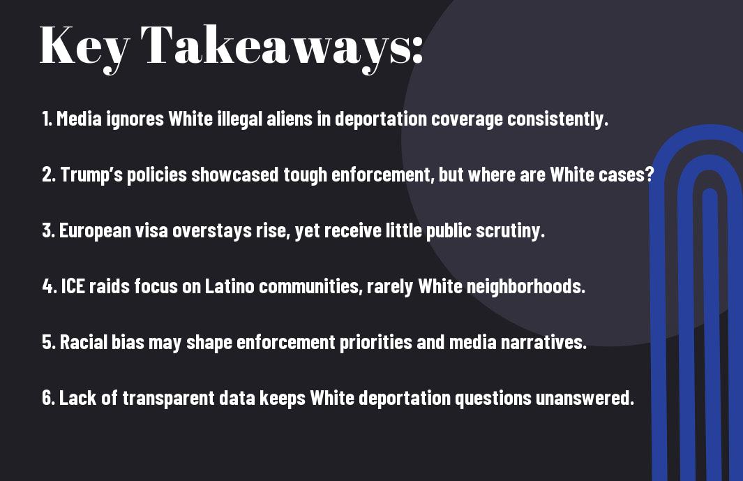 Just as you think the Trump administration’s immigration policies targeted all undocumented immigrants equally, you might be overlooking a significant and controversial gap. While media coverage and ICE raids focused heavily on Latino and Muslim populations, White illegal aliens from European countries and Canada appear almost invisible in reports and enforcement actions. This raises important questions about the possible racial disparities in deportation practices and the selective silence surrounding White undocumented immigrants. You need to understand whether this silence reflects policy, media bias, or something more intentional.