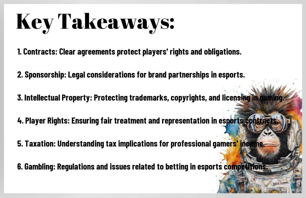 You may think that professional gamers only have to worry about perfecting their skills and staying on top of their game, but the world of esports has its own legal framework that players must navigate. In this blog post, we will explore the importance of understanding contracts, sponsorship deals, intellectual property laws, and labour rights in the fast-growing industry of esports. From player contracts to copyright infringement in game streaming, pro gamers need to be aware of their legal rights and responsibilities to protect themselves in this dynamic and competitive environment.
