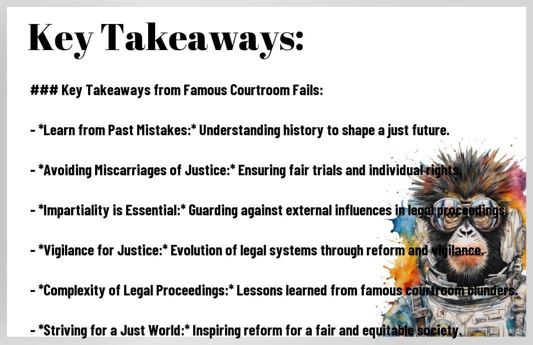 - Famous courtroom fails can have far-reaching and unforgettable consequences, highlighting the importance of rigorous legal standards and impartiality in judicial proceedings.