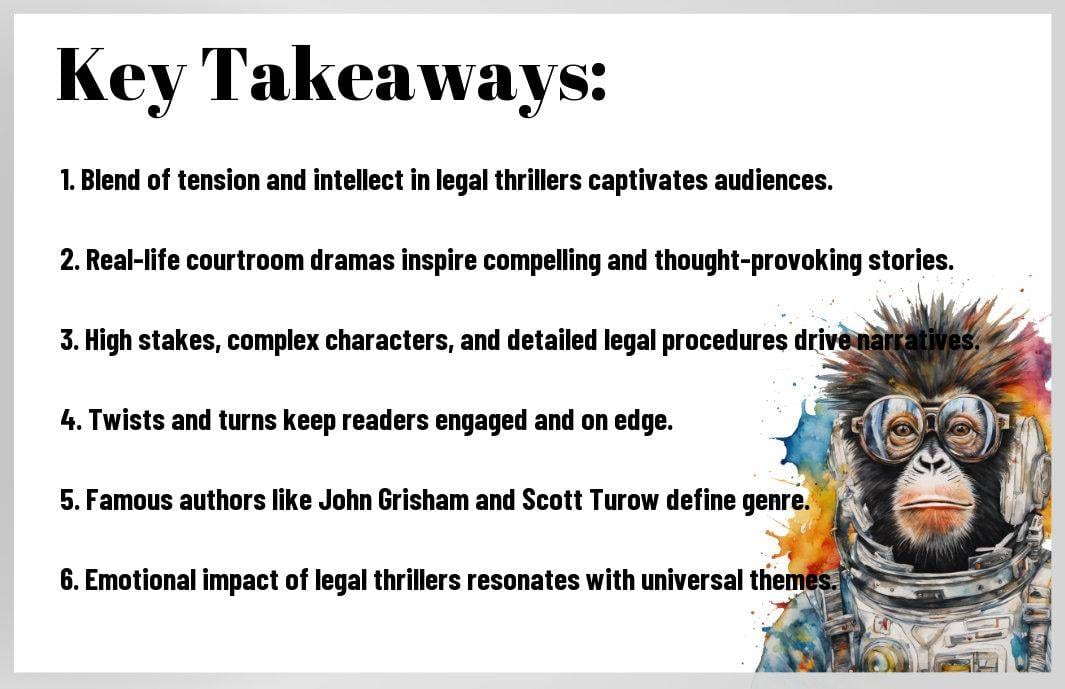 Unforgettable characters and pivotal evidence are crucial components of a captivating legal thriller, driving the narrative forward and keeping your audience invested in the outcome. By crafting intricate characters and weaving compelling evidence throughout your story, you can create a gripping and unforgettable legal thriller that will leave a lasting impact on your readers.